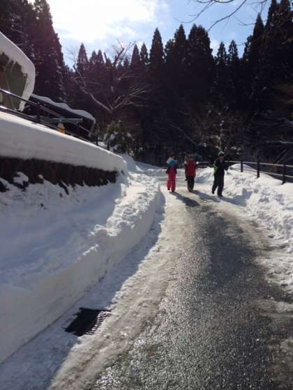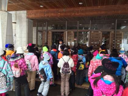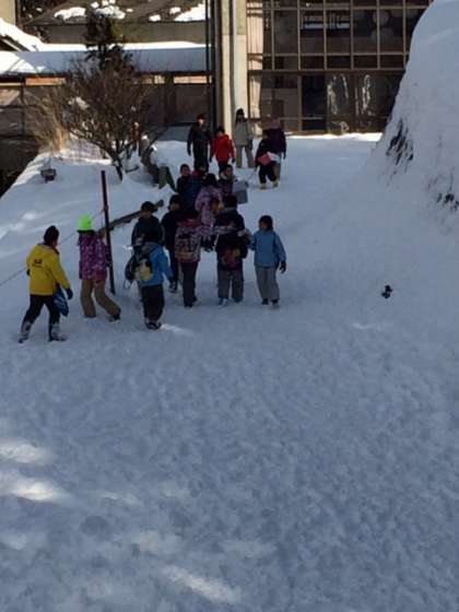 オリエンテーリングがはじまりました。真っ白な雪の上を長靴で踏みしめて,宿舎を出発しました。空気は凛と冷えていますが,天気はとてもよく気持ちいいです。うまくコースを回れるといいですね。