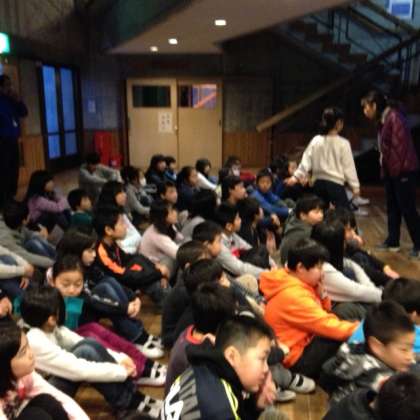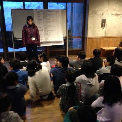 朝の集いです。今日の活動について婦木先生から話を聞いています。話を聞く態度もすばらしい5年生です。この長期宿泊学習での経験がきっとこれからの学校生活にも生かされそうです。