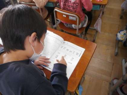「ぐんぐんタイム」では,計算練習をはじめ,漢字練習など短時間で集中してできる学習を行っています。その後,午後の学習(5校時)に入っていきます。