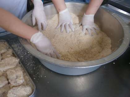 給食室の出し物は,手作りで心のこもった『トンカツ』です。