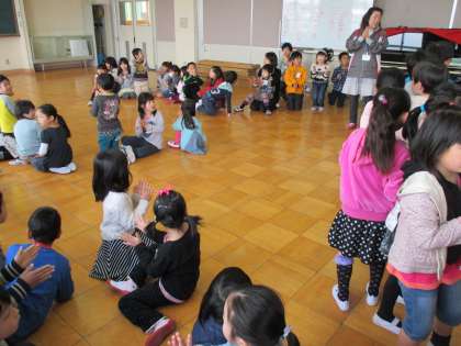 新しく来た先生の紹介や、つくし学級のお友達の自己紹介を聞きました。
