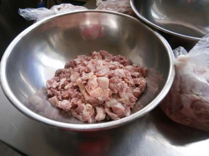 材料を丁寧に切って,鶏肉に下味をつけます。