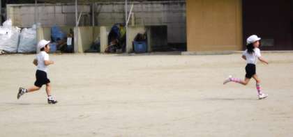 運動会に向けて2年生が50メートル層のタイムを計りました。