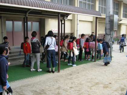 児童館に行く児童は児童館別に集まって集団で下校しました。