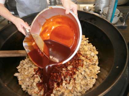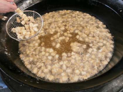 油で揚げた後「ケチャップ」や「ウスターソース」・「さとう」で作ったソースにからめます。