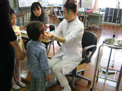 子どもたちの視野の様子や眼球の動きなどと,疾患がないか見ていただきました。