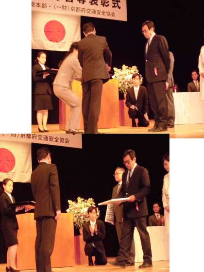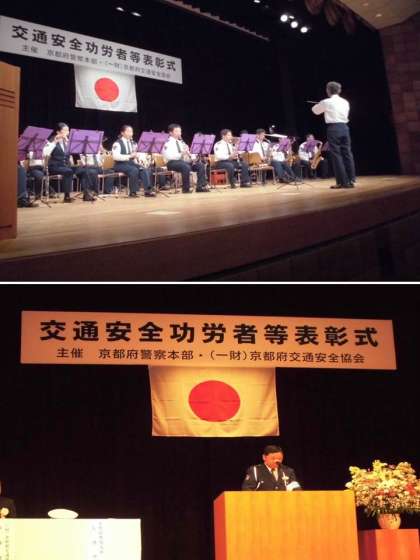 京都府警察本部と京都府交通安全協会主催の「交通安全功労者表彰式」に出席し、表彰を受けてきました。