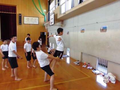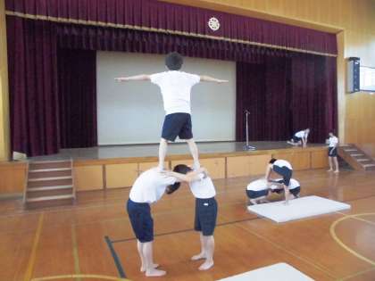 5月30日(土)の運動会に向けて、6年生が組体操の練習に力を入れ始めました。