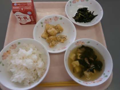 今日の給食は,「たら」をしょうが醤油につけて小麦粉と片栗粉をまぶして油で揚げた『たらのこはくあげ』でした。「しょうが」が入っていることにいち早く気づいた2年生がいました。