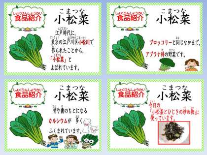 「たらのこはくあげがごはんといっしょに食べたらすごくおいしかったです。こまつなとひじきのいためものがおいしかったです。またつくってください。」・・・4の1