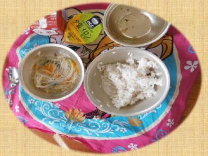 職員室のハッピーキャロットは,校長先生の『ビーフンスープ』に入っていました。