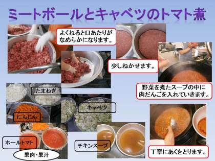 「ミートボールとキャベツのとまとにのミートボールがやわらかくておいしかったです。」・・・2の3