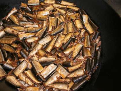 さんまが定番のしょうが煮やみそ煮ではなく,トウバンジャンを使った『かわり煮』です。