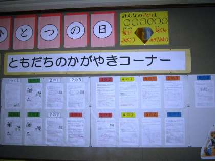 そのあと,学級で行った道徳の学習を終えてから,児童の意見や感想を北玄関の掲示板の張り出しています。