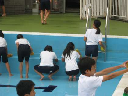6年生が来てくれて一緒にプール掃除をしてくれました。