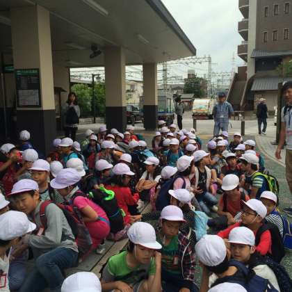 3年生は,大文字山に登ります。中書島駅を出発し,現在出町柳に到着しました。これから大文字山方面へ向かってバスに乗ります。安全に気をつけて歩きます。子どもたちはみんなとても元気です。