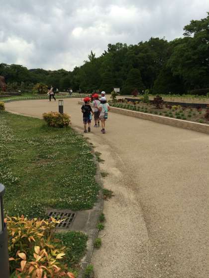 子どもたちは休憩をはさみながら,スタンプラリーをするなど,散策を続けています。けがなどもなく元気に活動しています。天気ももってくれることでしょう!これからお昼ごはんの時間です!