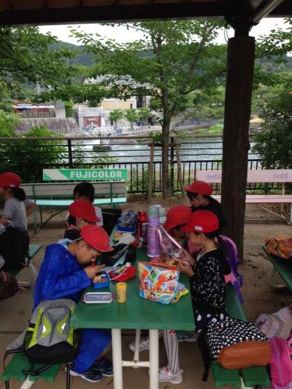 蹴上浄水場の見学を終え,動物園にてお弁当を食べます。子どもたちは全員元気に活動しています。