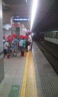 4年生の子どもたちは,学校へ向けて出発しました。地下鉄と京阪電車で中書島駅に向かい.その後,学校まで歩きます。最後まで安全に帰りたいと思います。
