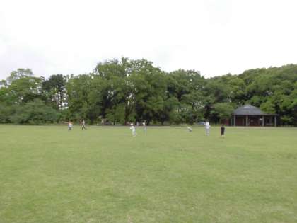 お弁当を食べた後,雨が上がり晴れ間も見えましたので広場で遊びました。