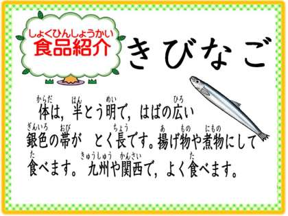 「きびなごのからあげはカリカリでおいしかったです。また,きつねどんぶりもあじがしみておいしかったです。」・・・5の2