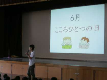 今日6月8日は,こころひとつの日の取組を行いました。今日は,5年生の担任が中心となって,心を一つにするために全員で詩の朗読を行いました。伏見南浜小学校の子どもたちの心が一つになり,大きな声が響き渡りました!
