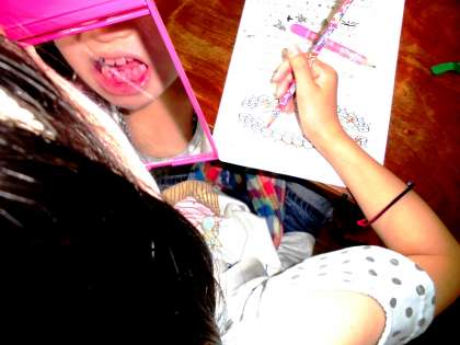 虫歯予防週間で カラーテスターを使って歯磨きがちゃんとできているか検査をしています。