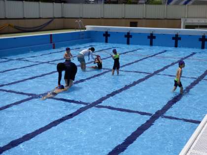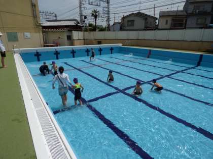 今年度初のプール水泳水遊びは「つくし学級」です。