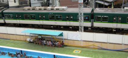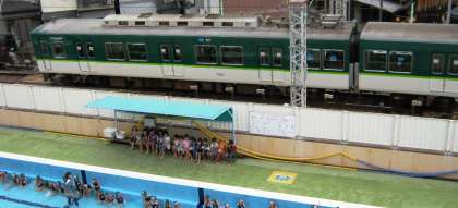プールの横には,京阪電車が!!