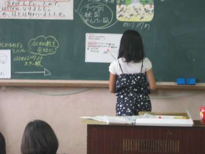 問題に示された数と,何を求めるのかを考え,数の量を考えてテープ図をもとにして立式しました。