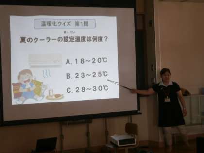 本日,3・4校時に,4年生がエコライフチャレンジ(環境学習)を行っています。気候ネットワークの方々をお招きして,地球の環境を守っていくために,毎日の生活の中で自分にできることを考えるための学習です。子どもたちは,真剣に,楽しく学習に取り組んでいます。