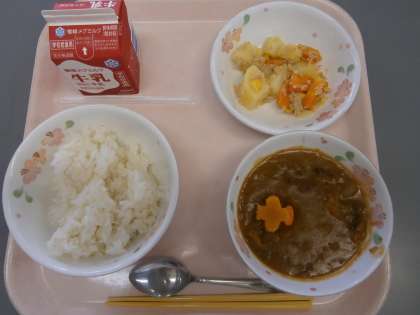今日の給食は,ごはんにかけて食べる『ハッシュドビーフ』でした。暑くなって少し疲れが出てきた頃で,食欲のない時でも,ごはんにかけて食べるメニューは,比較的食べやすく,ごはんも残りません。