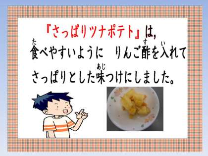 「さっぱりツナポテトは,ほくほくしておいしかったです。」・・・つくし4ねん・5ねん