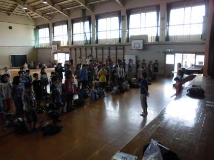 朝8時に集合した子ども達は,体育館で出発式を行いました。