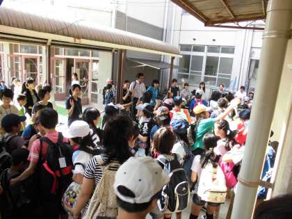 聴いた後,子ども達は,他学年の子ども達や,教職員,保護者の方に見送られてバスに向かいました。