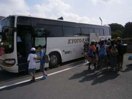 先ほど,月桂冠の駐車場よりバスに乗り,修学旅行に出発しました。出発式に引き続き,たくさんの保護者の方々に見送っていただき,子どもたちは笑顔で出発することができました。本当にありがとうございました。今後の,子どもたちの様子は,学校ホームページにて随時掲載していく予定です。是非,ご覧ください。