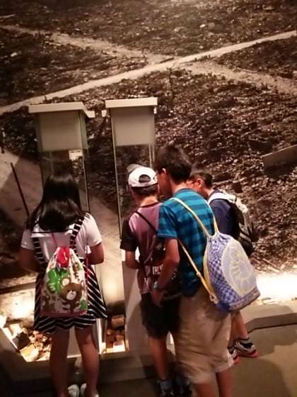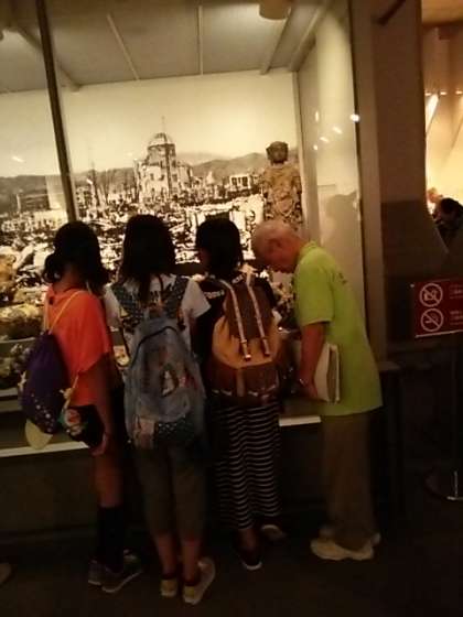 原子爆弾の凄まじい威力を今に伝える展示物を,一つ一つ真剣に見てまわっています。