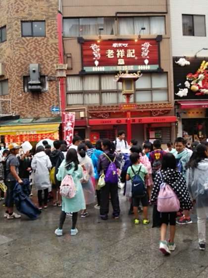 6年生の子ども達は,南京町を出発します。