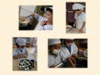 普段苦手な夏野菜も,自分たちで料理を作ると味は格別のようです。いつもより旺盛な食欲に,驚いた給食時間でした。