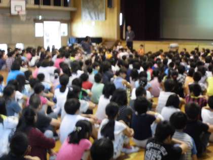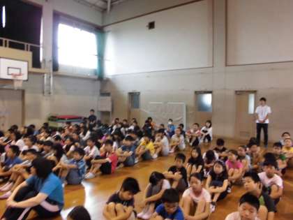 一つ目は,6年生の修学りょこぷに行ったときの態度が素晴らしかったことを全校児童に伝えました。