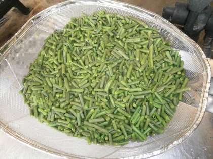 にんじんがやわらかくなれば,別炊きにしておいた高野豆腐と三度豆を順に煮ます。