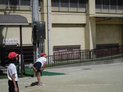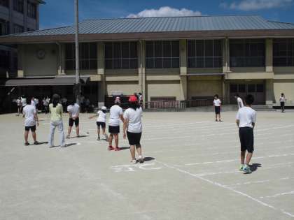 5・6年生で実施している「スポーツテスト」の種目の一つ,「ソフトボール投げ」を行いました。