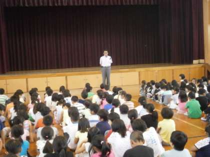 いよいよ明日から夏休みが始まります。今朝,1時間目に,夏休み前の朝会を開きました。体育館の中は暑かったですが,校長先生のお話をしっかりと集中して聞いていました。自分の一生懸命になれるものを見つけたり,家のお手伝いをするなど,有意義な夏休みにしてほしいという校長先生のお話でした。安全に気をつけて,夏休み明け,笑顔輝く子どもたちを待っています!
