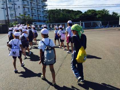 大野浜に無事とぷ着して,波遊びをしています!子どもたちは,ものすごく楽しそうです。子どもたちにとってとてもよい経験になると思います。天気は昨日とうってかわって気持ちよく晴れています!みんな元気に活動中です。