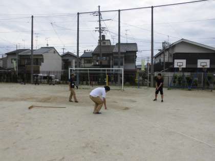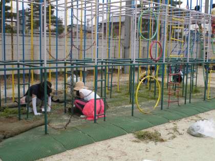 トイレ清掃や運動場の整備,総合遊具周りの草引きも行いました。