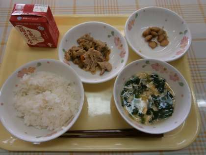 「私は大人ですが,実はゴーヤが苦手です。家では使いません。だから今日は,少しかくごして口に入れてみました。クラスの子どもが『今日はあまいよ〜!』と言ってくれて,とても甘くておいしくいただきました。ゴーヤをこくふくしたいです。かきたま汁は,私も大好物で,卵の食感を楽しみながらいただきました。ごちそう様でした。」・・・担任(東階段の掲示用の給食カレンダーに書いて,ぱくぱくポストに入れたそうです。)