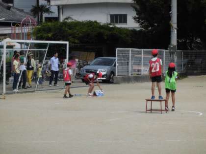 4年生の参観授業では2時間目と3時間目で,2組・3組それぞれ体育の「ポートボール」の学習を行いました。