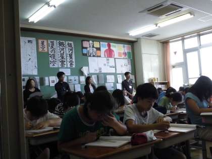 6年生の教室です。授業に集中する姿も素晴らしいですが,夏休みの自由課題の掲示物も見ごたえがあります。