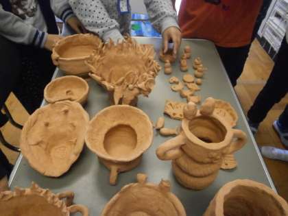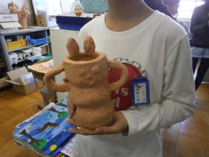 PTA陶芸教室で6年生が制作した焼き物の窯出しを行いました。焼きあがった作品を手に取り,子どもたちは満面の笑みを浮かべて喜んでいました。自分が苦労して土を練って作り,よい経験になりました。