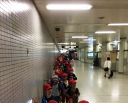 1年生・つくし学級児童が,無事に国際会館駅に到着し,子どもの楽園へ向かっています。
